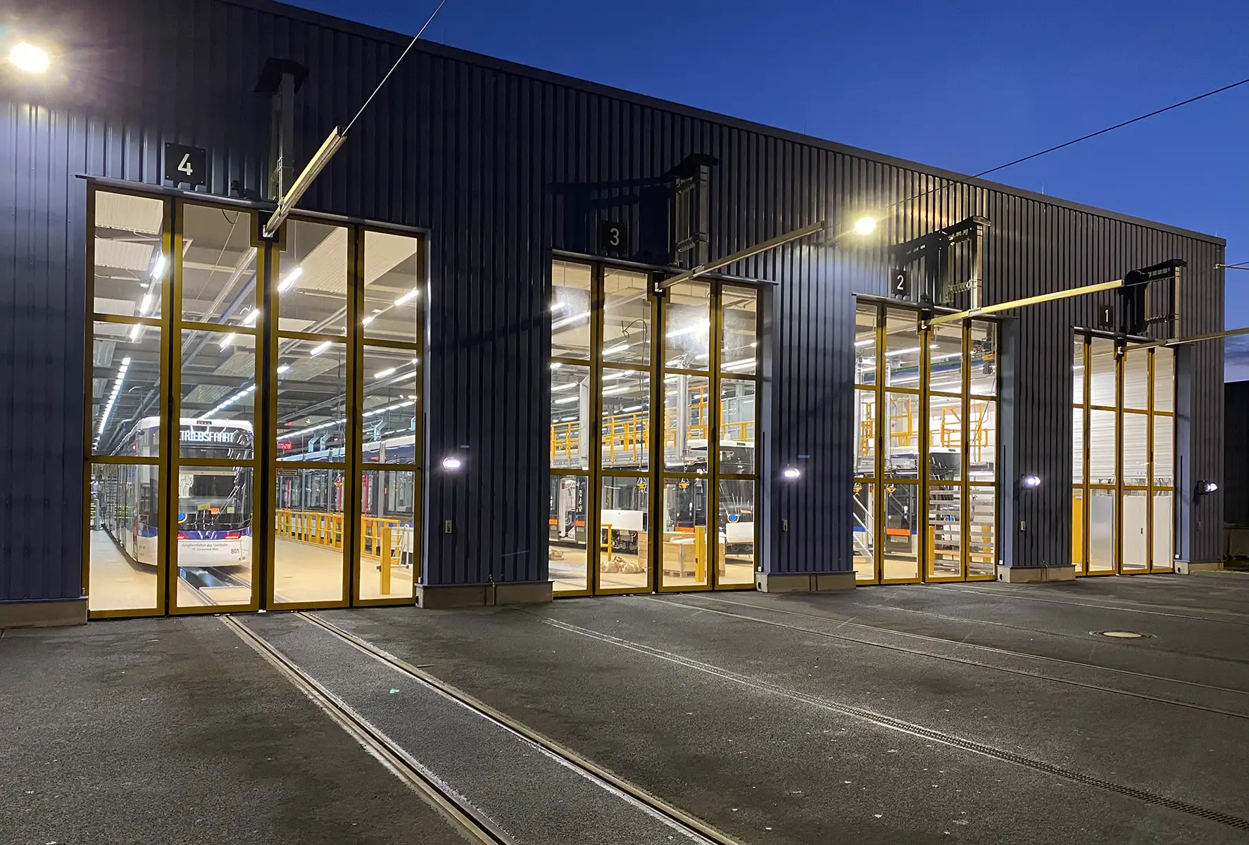 - Neue Stadler-Straßenbahnzüge benötigen mehr Platz, was den Umbau der zentralen Werkstatthalle und den Neubau von Nebengebäuden / Lagern und einer dreigleisigen Abstellhalle notwendig macht